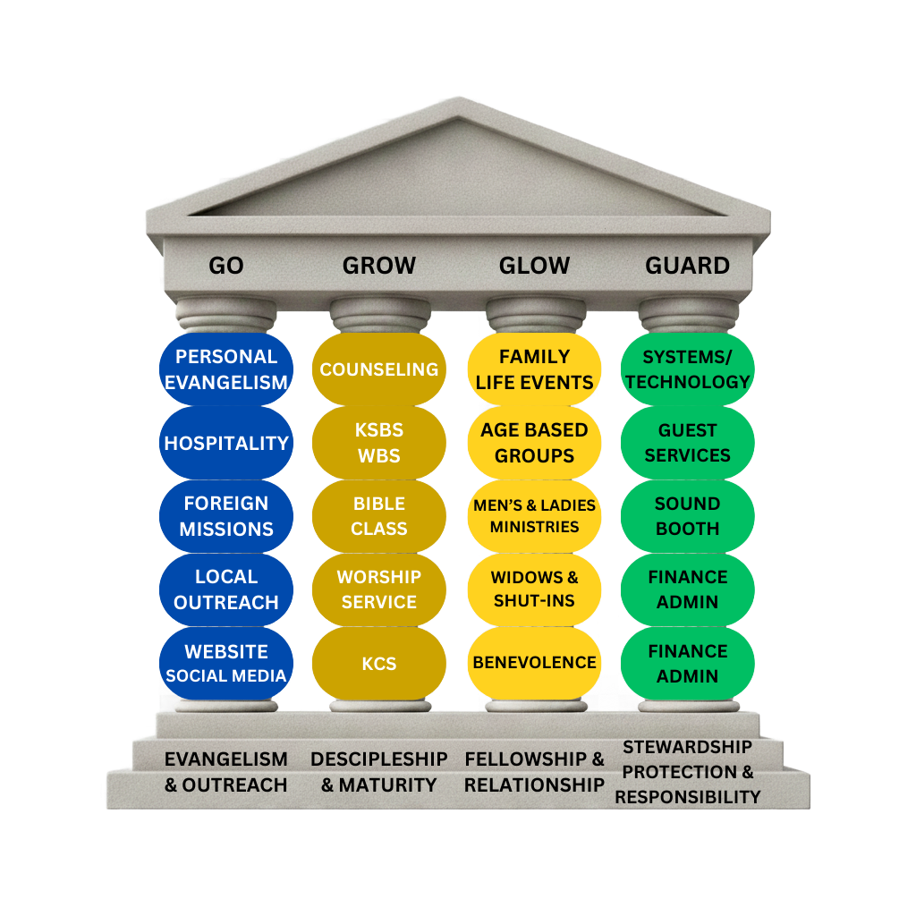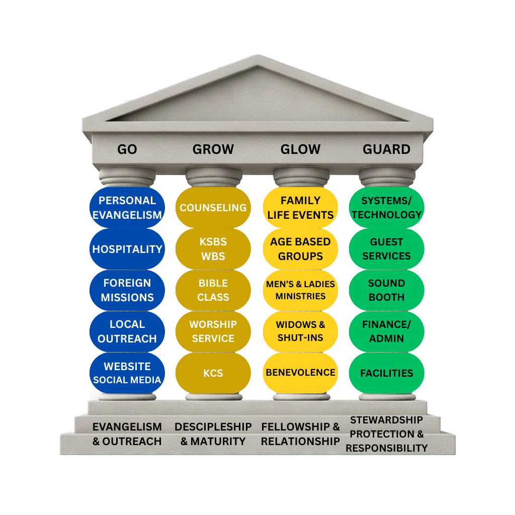 - Guard – Stewardship, Protection & Responsibility: Protecting the integrity, security, and order of the church—spiritually and physically. “Pay careful attention to yourselves and to all the flock...” Acts 20:28